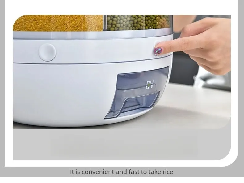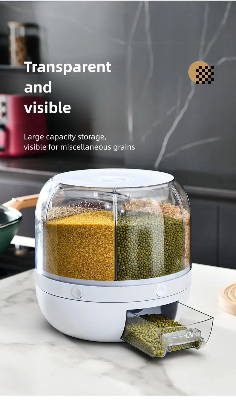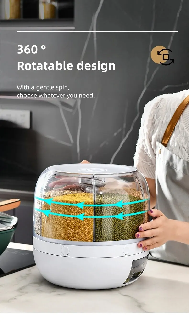 • 360° Rotating Design :The 360° rotating design of this grain dispenser allows for easy and convenient access to your rice or grains, making it a perfect addition to your modern kitchen.